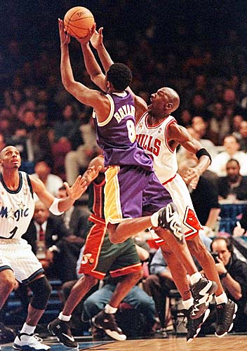 Bryant contre Vlade Divac avec les Lakers. En dépit